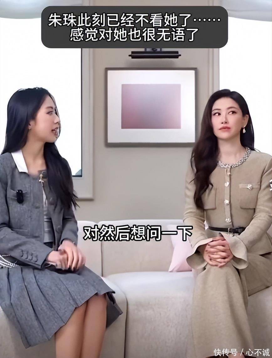 主持人依旧带头冲在前面,把朱珠这个主人甩在身后,朱珠只得主动开口:“欢迎,请进。”可是,她的这一句热情回应,根本没能引来主持人的搭话。反倒变成了主角的主持人直接走到沙发上,完全没搭理朱珠一眼,就这样坐了下来。实话说,一开始看这个视频时,我还以为这是浪姐里的一个桥段,女主持走进朱珠屋里找队友玩,之后和朱珠根本就不会打交道。