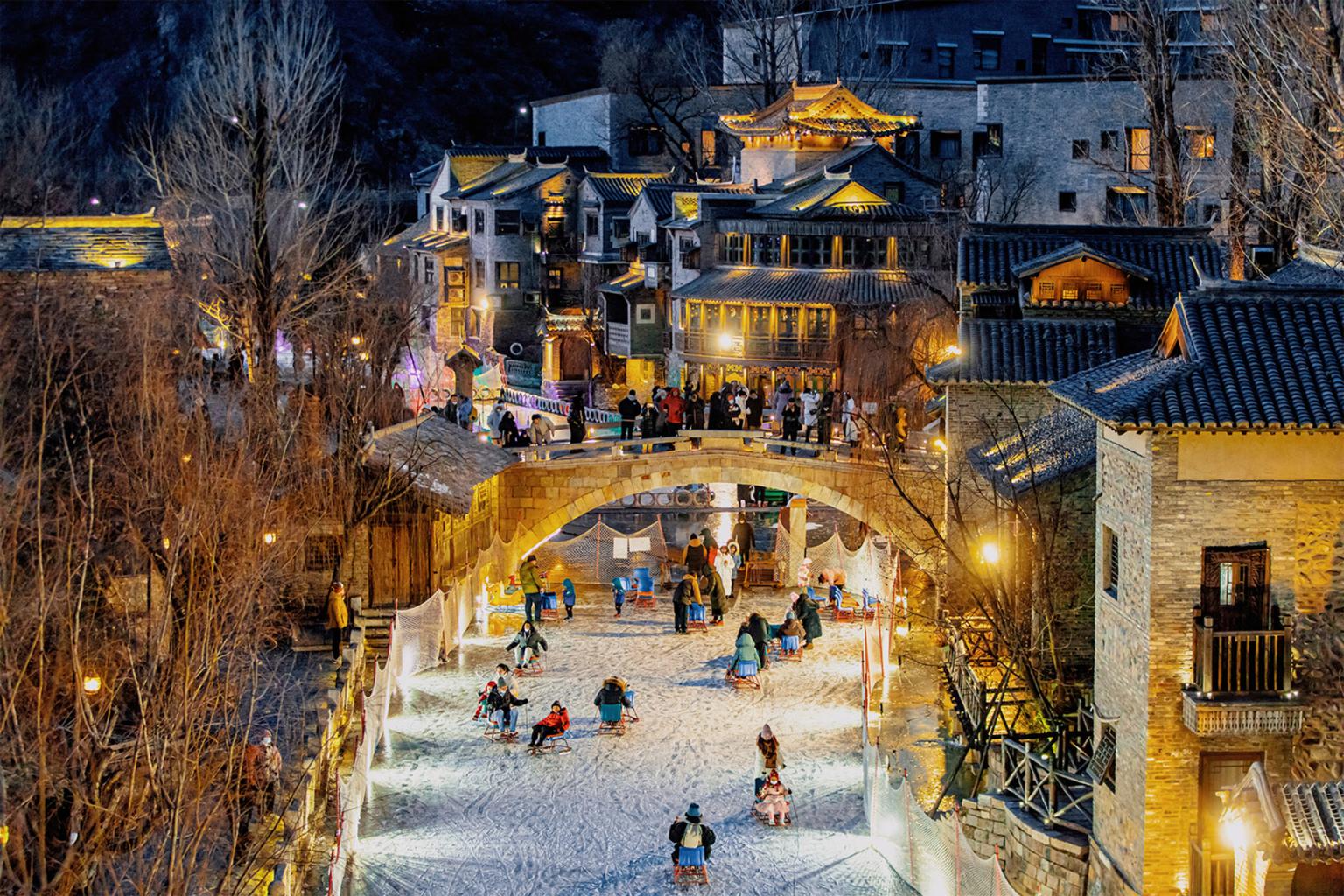 今年1月,古北水镇推出预约免票政策,同时依托司马台长城和古北口深厚的历史文化底蕴,对冬季产品进行整体升级。白天,游客可以参与长城冰雪节,泡汤泉、品美食、享冰趣;夜幕降临,则能够欣赏长城千灯会上的各式花灯。