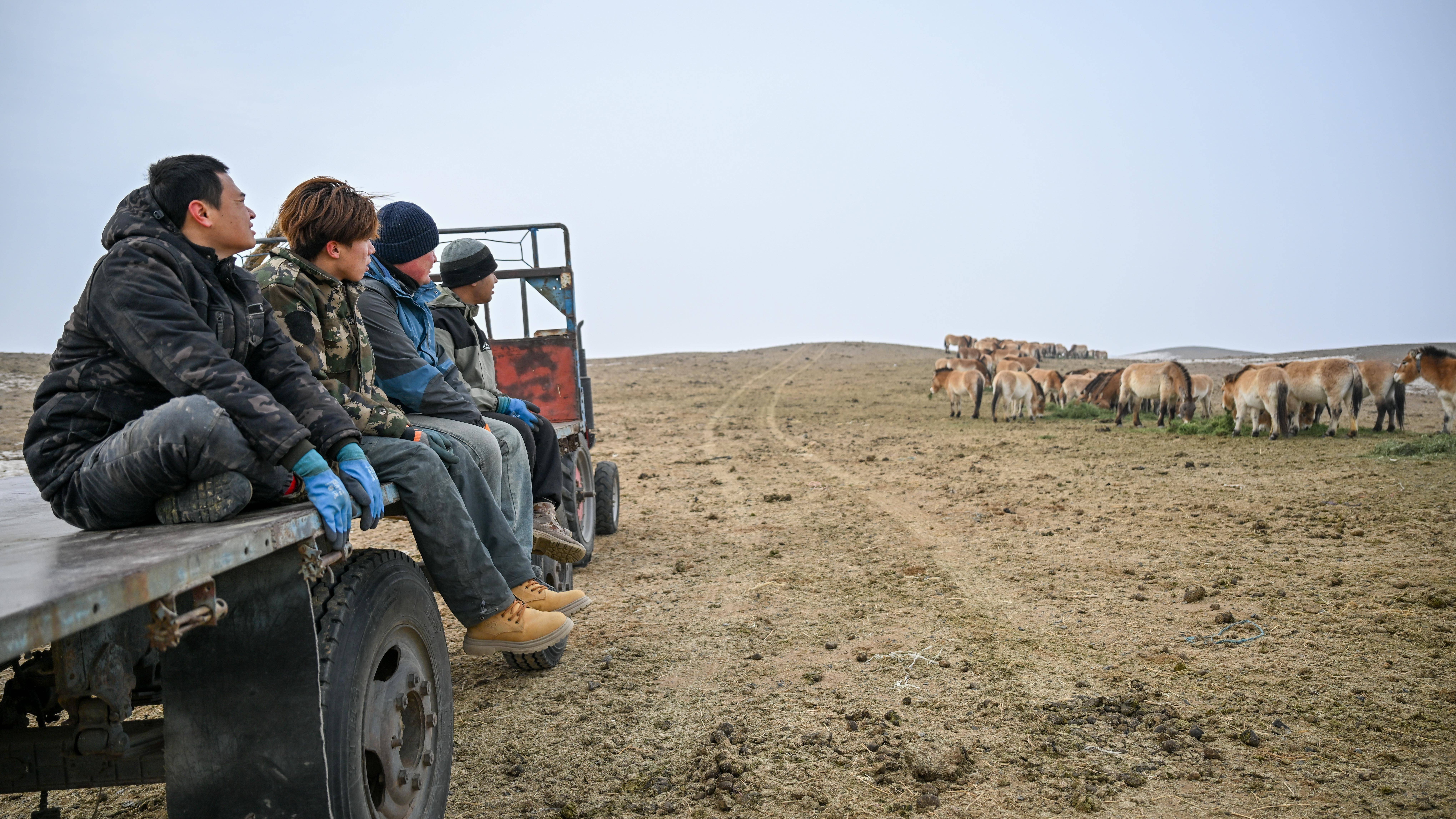 乔木希拜普氏野马监测站的管护员在观察野马进食情况(2月4日摄)。新华社记者 丁磊 摄这些野马,是冬日里主动归“家”的“孩子”,依赖且信任这些管护员。可他们的心情却格外复杂——既盼着这些野马真正回归自然、野蛮生长,又藏着牵挂,希望能常常看到它们的身影,知道它们安好。