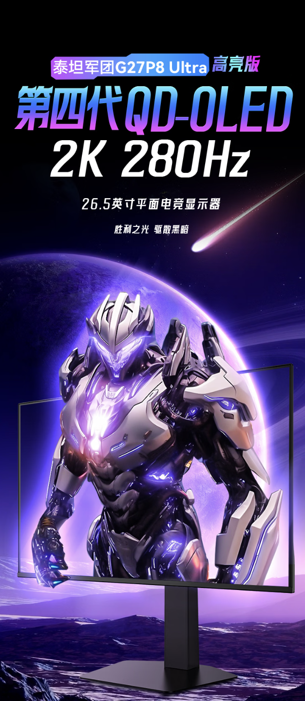 IT之家 2 月 28 日消息,泰坦军团 G27P8 Ultra 显示器现已开启新品预约炒股配资股票,新品主打电竞玩家,搭载 26.5 英寸 2K 280Hz QD-OLED 面板,支持原生 10 bit 色深,售价 2888 元。