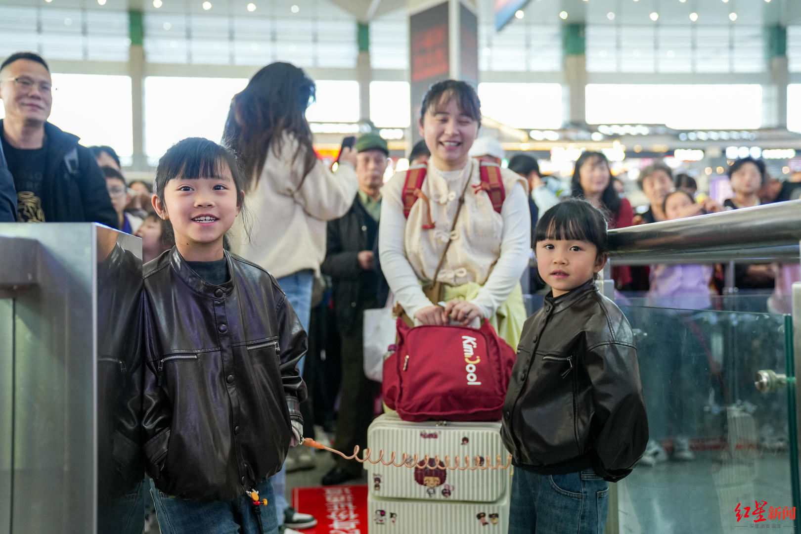 送7岁女儿和父母前往北京的市民陈女士,在检票口和家人挥手告别。“孩子一直想去天安门看升旗,之前总没时间,这次春假刚好圆了她的心愿。”陈女士告诉红星新闻记者,自己和丈夫工作忙,特意给老人孩子订了卧铺车票,让他们能慢悠悠地逛遍北京的名胜古迹,“车站给老人孩子开辟了优先检票的通道,我们进站、送站都很顺利,完全不用担心。”